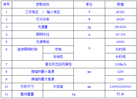 車載移動照明設(shè)備供電設(shè)備:選用220v電源或發(fā)電機供電,可連續(xù)長時間照明使用。