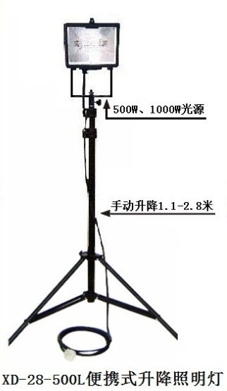便攜式照明燈由1個(gè)500W品牌燈頭組成,可根據(jù)現(xiàn)場需要將燈頭單獨(dú)做上下、左右大角度調(diào)節(jié)旋轉(zhuǎn)實(shí)現(xiàn)360°全方位照明;整體照明遠(yuǎn)近兼顧,照明亮度高、范圍大,燈泡壽命長。