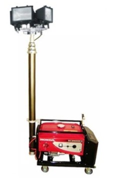 移動照明燈組是一體化的便攜式移動照明系統(tǒng)。由發(fā)電機(jī)、發(fā)電機(jī)底盤、氣動升降燈桿、4個500W鹵素?zé)簟⒖刂葡涞葞状蟛糠纸M成。